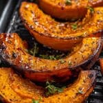 - Step 6: Air fry at 390°F for 13–15 minutes, flipping the slices halfway through. The pumpkin is done when fork-tender and caramelized at the edges.