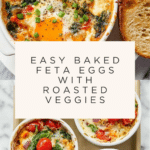 Keywords: baked feta eggs, baked eggs, Mediterranean breakfast, feta cheese recipe, egg recipe, baked vegetable eggs