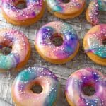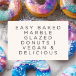 Delight in these Baked Marble Glazed Donuts, a vegan-friendly treat made with wholesome ingredients like almond milk, coconut sugar, and chia eggs. These light and fluffy donuts are baked to perfection and topped with a vibrant marble glaze created from naturally colored vegan food coloring, offering a beautiful and tasty finish without frying or unhealthy fats.