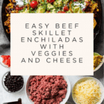 Keywords: skillet enchiladas, beef enchiladas, easy dinner recipe, one-pan Mexican meal, ground beef recipe, baked enchiladas
