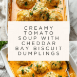Keywords: tomato soup, cheddar bay biscuit dumplings, homemade tomato soup, easy tomato soup recipe, creamy tomato soup, stovetop soup