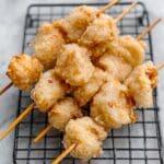 - Coat the carioca: Dip the fried carioca balls into the warm glaze, ensuring each piece is fully coated. Optional: skewer the glazed carioca on wooden skewers for serving.