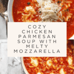 Chicken Parmesan Soup is a comforting and hearty dish that combines tender chicken, flavorful marinara, and lots of Parmigiano Reggiano cheese. Topped with melty mozzarella, it’s a satisfying meal perfect for chilly days when you want something warm and filling without fuss.