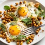 Keywords: chickpea fried eggs, za’atar eggs, Calabrian chile, Mediterranean breakfast, spiced chickpeas, fried eggs recipe