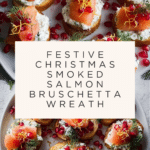 Keywords: Christmas appetizer, smoked salmon bruschetta, holiday wreath appetizer, festive finger food, smoked fish hors d’oeuvres