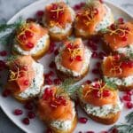 This Christmas Smoked Salmon Bruschetta Wreath is a festive and elegant appetizer that’s perfect for holiday gatherings. Featuring crispy baguette slices topped with creamy lemon-zested spread and delicate smoked salmon, it’s both beautiful and delicious.