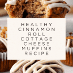 Keywords: cinnamon roll muffins, cottage cheese muffins, healthy muffins, breakfast muffins, protein muffins, banana muffins, cinnamon swirl