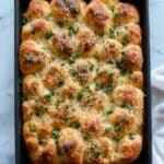 This Classic Garlic Bread Focaccia is a beautifully airy and flavorful Italian bread infused with aromatic garlic butter, topped with flaky sea salt, fresh parsley, and Parmesan cheese. Its slow-fermented dough results in a perfectly textured, golden crust, ideal as a side for meals or a delicious snack on its own.