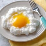 It’s best to serve cloud eggs fresh because the whipped egg whites can deflate and the yolks may overcook when reheated. However, you can prepare the egg whites in advance and fold in the cheese just before baking.