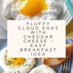 Keywords: cloud eggs, whipped egg whites, baked eggs, breakfast recipe, cheesy eggs, fluffy eggs