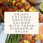 Keywords: Coconut Crusted Salmon, Pineapple Salsa, Healthy Salmon Recipe, Tropical Salmon, Crunchy Crusted Fish, Quick Dinner, Seafood with Fruit Salsa