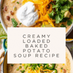 This comforting loaded baked potato soup is the perfect hearty meal for chilly days. Creamy, cheesy, and topped with crispy bacon and green onions, it delivers all the flavors of a classic baked potato in a warm, cozy bowl.