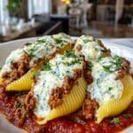Comforting stuffed manicotti is a classic Italian-American dish perfect for a cozy dinner. Tender pasta shells filled with a creamy cheese mixture and topped with savory meat sauce create a delicious and satisfying meal the whole family will love.
