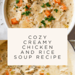 Keywords: creamy chicken soup, chicken and rice soup, easy chicken soup, comfort food soup, one pot soup, homemade chicken soup