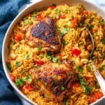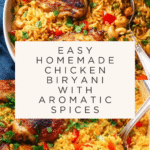 This flavorful Chicken Biryani recipe features tender chicken thighs cooked with aromatic spices, fresh vegetables, and basmati rice. Simmered together in chicken broth, it creates a fragrant and hearty one-pot meal perfect for a satisfying dinner.