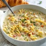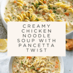 Keywords: creamy chicken noodle soup, pancetta chicken soup, homemade chicken soup, comforting chicken soup, creamy chicken soup recipe, lemon chicken noodle soup