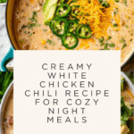 This creamy white chicken chili is a comforting and flavorful twist on traditional chili. Packed with tender shredded chicken, white beans, and a touch of heat, it’s perfect for cozy dinners or game day gatherings. The addition of cream cheese gives it a rich, velvety texture that keeps everyone coming back for more.