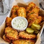 Crispy, golden fried pickles made with dill pickle slices coated in a seasoned batter and panko breadcrumb mixture, then fried to perfection. These tangy, crunchy snacks are perfect as an appetizer or side dish and are delicious when served with ranch or your favorite dipping sauce.