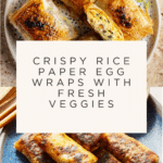 Keywords: rice paper egg wraps, crispy egg wraps, healthy Asian snack, pan-fried rice paper wraps, fresh vegetable wraps, low sodium soy sauce snack