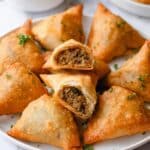 Keywords: Sambusa recipe, fried meat samosas, Middle Eastern appetizer, ground beef samosas, deep fried pastry, spiced meat filling