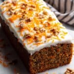 - Prepare Topping: Once the cake is baked and slightly cooled, spread a layer of Greek yogurt on top. Sprinkle with grated carrots and chopped pecans.