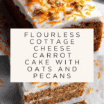 A wholesome and delicious flourless cottage cheese carrot cake made with oats, bananas, and pecans. This healthy, protein-packed cake is naturally sweetened with maple syrup and topped with Greek yogurt and fresh grated carrot, making it a perfect guilt-free treat for any time of the day.