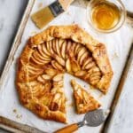 - Preheat and bake: Preheat your oven to 350°F (175°C) and position a rack in the center. Bake the tart for 55 to 65 minutes or until the apples are tender and the crust is golden brown and cooked through. It’s normal if some juice leaks onto the baking sheet; the burnt bits can be scraped away after baking. Transfer the tart on the pan to a cooling rack.