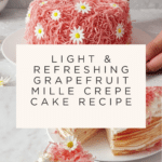 This Grapefruit Mille Crepe Cake is a delicate and refreshing dessert featuring thin layers of soft crepes alternated with fluffy whipped cream. Infused with subtle citrus notes and decorated with fresh grapefruit segments, this cake is perfect for a light and elegant treat that balances sweetness with tangy freshness.