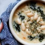 Keywords: Greek white bean soup, Fasolada, cannellini bean soup, Mediterranean soup, healthy bean soup, vegetarian soup, lemon bean soup, tomato bean soup