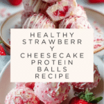 Keywords: strawberry cheesecake protein balls, healthy snack, no-bake protein balls, protein snacks, high protein, strawberry protein bites