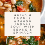 Keywords: ground turkey soup, healthy soup recipe, easy weeknight meal, soup with beans and spinach, turkey and bean soup, quick homemade soup