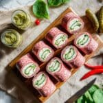 These Irresistible Keto Salami Roll-Ups are perfect for quick, low-carb snacking or party appetizers. Featuring creamy, tangy cream cheese mixed with dill pickles and seasonings, wrapped tightly in savory Genoa salami slices, they offer a delicious blend of flavors and textures that are both satisfying and keto-friendly.