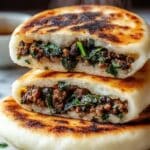 - Stuff the Pita Pockets: Cut each of the Lebanese-style pita breads in half to create four pockets. Spoon a few tablespoons of the prepared meat mixture into each pita pocket, pressing gently to secure the filling inside. Optionally, sprinkle some grated Gruyere cheese inside for added richness and flavor.