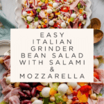 This Italian Grinder Bean Salad is a vibrant and zesty dish combining beans, deli meats, fresh vegetables, and a tangy Italian dressing. Easy to prepare and perfect for a light lunch or a picnic, this salad offers a delightful balance of flavors and textures, featuring hearty chickpeas and kidney beans, savory salami and turkey, creamy bocconcini, and crisp vegetables.