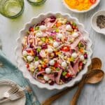 This Italian Grinder Bean Salad is a vibrant and zesty dish combining beans, deli meats, fresh vegetables, and a tangy Italian dressing. Easy to prepare and perfect for a light lunch or a picnic, this salad offers a delightful balance of flavors and textures, featuring hearty chickpeas and kidney beans, savory salami and turkey, creamy bocconcini, and crisp vegetables.