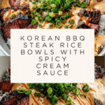 Korean BBQ Steak Rice Bowls bring together tender, marinated steak with fresh vegetables and a flavorful spicy cream sauce. This dish is perfect for a quick weeknight dinner that feels special and packed with vibrant flavors.