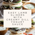 Keywords: Lamb sliders, Mediterranean lamb, lamb patties, mini pita sandwiches, dill yogurt sauce, party appetizers, easy lamb recipe