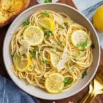 This Linguine with Lemon Butter Sauce recipe features al dente linguine tossed in a flavorful, tangy lemon butter sauce with aromatic onions, garlic, and a splash of white wine. Finished with fresh parsley, parmesan cheese, and served with garlic bread, this dish offers a perfect balance of bright citrus notes and rich buttery goodness for an elegant yet simple pasta meal.