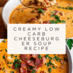 Keywords: Low carb soup, cheeseburger soup, keto soup, creamy beef soup, bacon soup, easy dinner soup