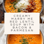 Keywords: Marry Me Red Lentil Soup, lentil soup, creamy lentil soup, sun-dried tomato soup, smoky bacon soup, coconut milk soup, easy soup recipe, protein-packed soup, meal prep soup