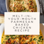 Keywords: chicken breast recipe, baked chicken, Parmesan chicken, easy chicken dinner, creamy chicken, garlic chicken, melt in your mouth chicken