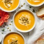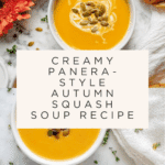 Keywords: Panera Autumn Squash Soup, butternut squash soup, pumpkin soup, fall soup, creamy squash soup, vegetarian soup, copycat Panera soup