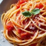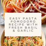 A classic Italian Pasta Pomodoro recipe featuring a simple, fresh tomato sauce made with garlic, ripe tomatoes, and basil, served over perfectly cooked spaghetti or linguine and topped with freshly grated Parmesan cheese. This quick and easy dish highlights bright, fresh flavors and is perfect for a comforting weeknight meal.