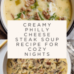 Philly Cheese Steak Soup brings the hearty flavors of the classic sandwich into a comforting bowl. This creamy, cheesy soup is packed with tender beef, sautéed peppers, onions, and mushrooms, perfect for a chilly day or anytime you crave something rich and satisfying.