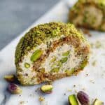 A decadent and nutty Pistachio and White Chocolate Salami that combines creamy white chocolate, rich pistachio butter, crunchy cookies, and chopped pistachios. This no-bake dessert is shaped into a log, chilled until set, then coated with pistachios for an elegant presentation. Perfect for impressing guests or indulging in a luxurious treat.
