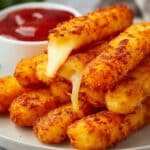 - Baking Option (Optional): Preheat oven to 400°F (200°C). Arrange coated sticks on a parchment-lined baking sheet, drizzle lightly with olive oil, and sprinkle with salt. Bake for about 15 minutes until the cheese melts completely and the exterior is lightly golden.