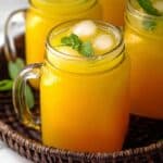 This Refreshing Homemade Mango Lemonade combines the tangy zest of fresh lemon juice with the sweet, tropical flavor of mango pulp, lightly sweetened with honey and infused with fresh mint leaves. It’s a perfect revitalizing drink for hot days, served chilled with ice and an optional lemon slice garnish.