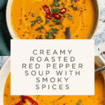 Keywords: roasted red pepper soup, smoky soup, vegetarian soup, easy soup recipe, roasted peppers, healthy soup