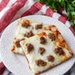 This School Cafeteria Breakfast Pizza brings back nostalgic flavors with a simple, hearty twist. Crispy pizza crust topped with creamy white gravy, melted mozzarella, and savory sausage makes for a delicious morning treat the whole family will love.