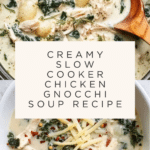 Keywords: slow cooker chicken soup, creamy chicken gnocchi soup, easy chicken soup recipe, slow cooker dinner, comfort food soup, pesto chicken soup